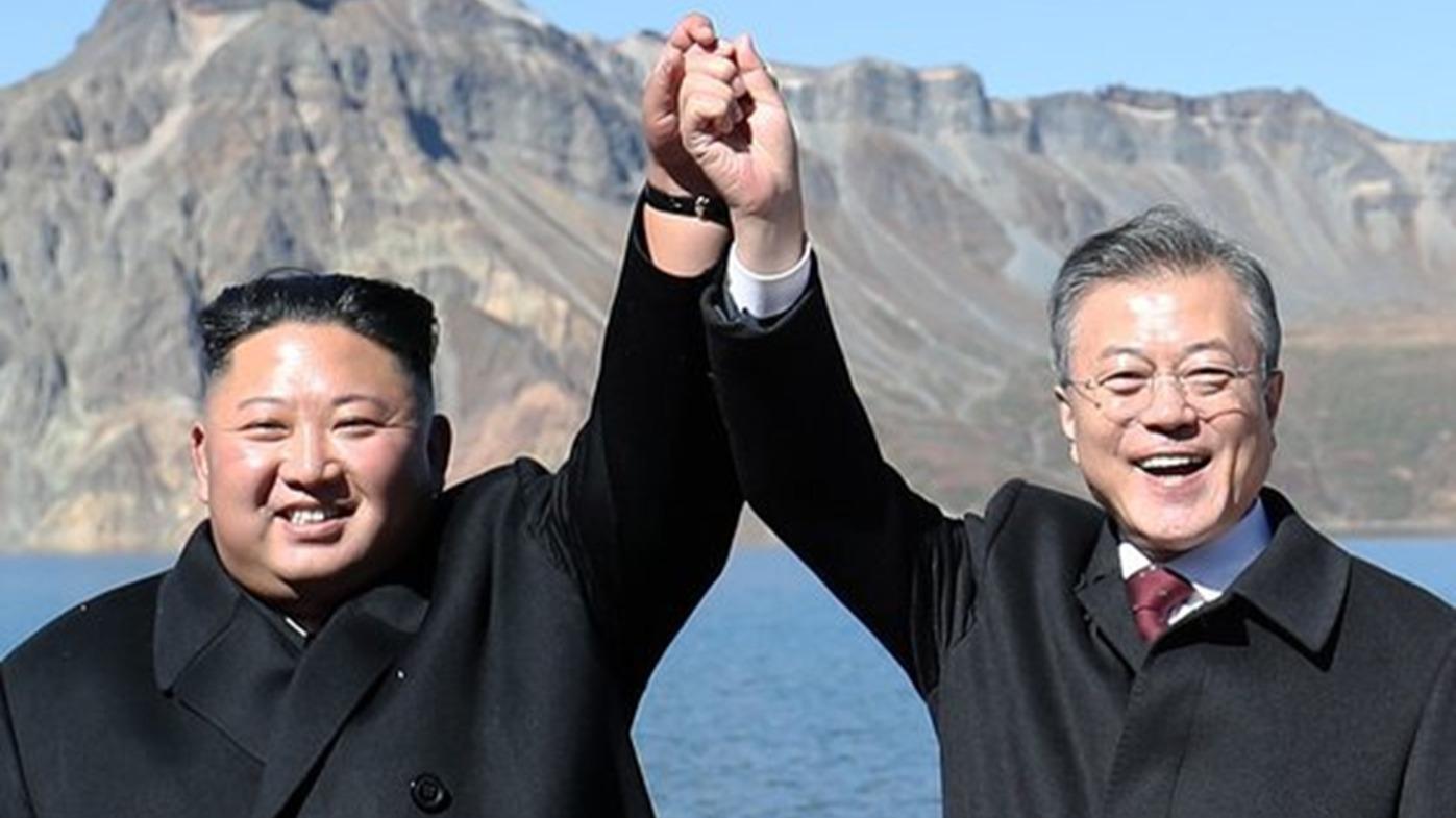 2018年の南北首脳会談での金正恩総書記と文在寅大統領(当時)(朝鮮中央テレビから)