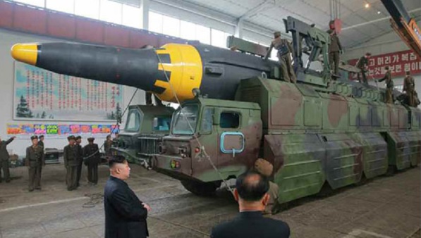 グアムを狙う「火星12号」の傍に立つ金正恩委員長