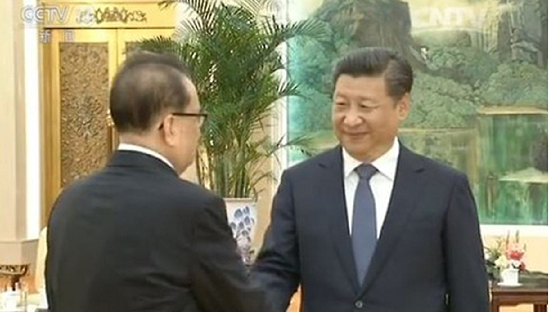 昨年訪中した北朝鮮の李スヨン党副委員長(前外相)と握手する習近平主席