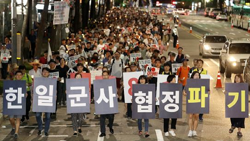 GSOMIA(日韓軍事情報包括保護協定)の破棄を求めた韓国のデモ(主催団体提供)