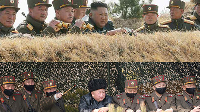 直近の3回にわたる軍事訓練では随行した軍幹部らが全員、マスクを着用していたが、昨日の訓練ではマスクを付けた随行者は一人もいなかった。
