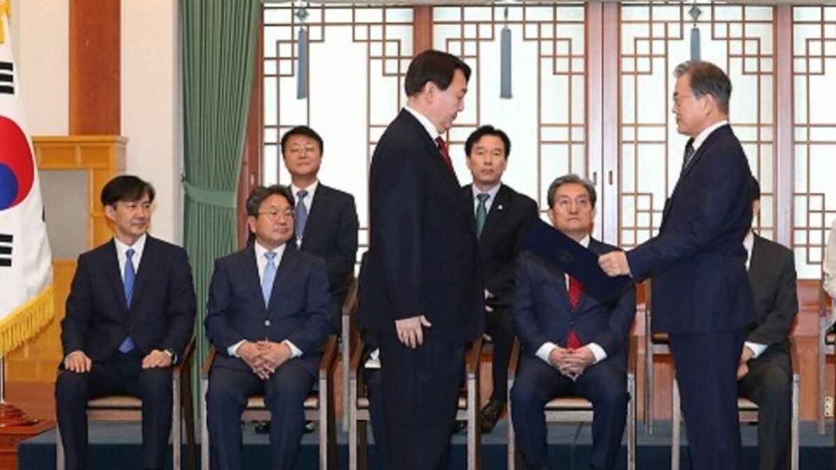 文在寅大統領から検察総長任命状を手渡された当時の尹錫悦氏(青瓦台HPから)