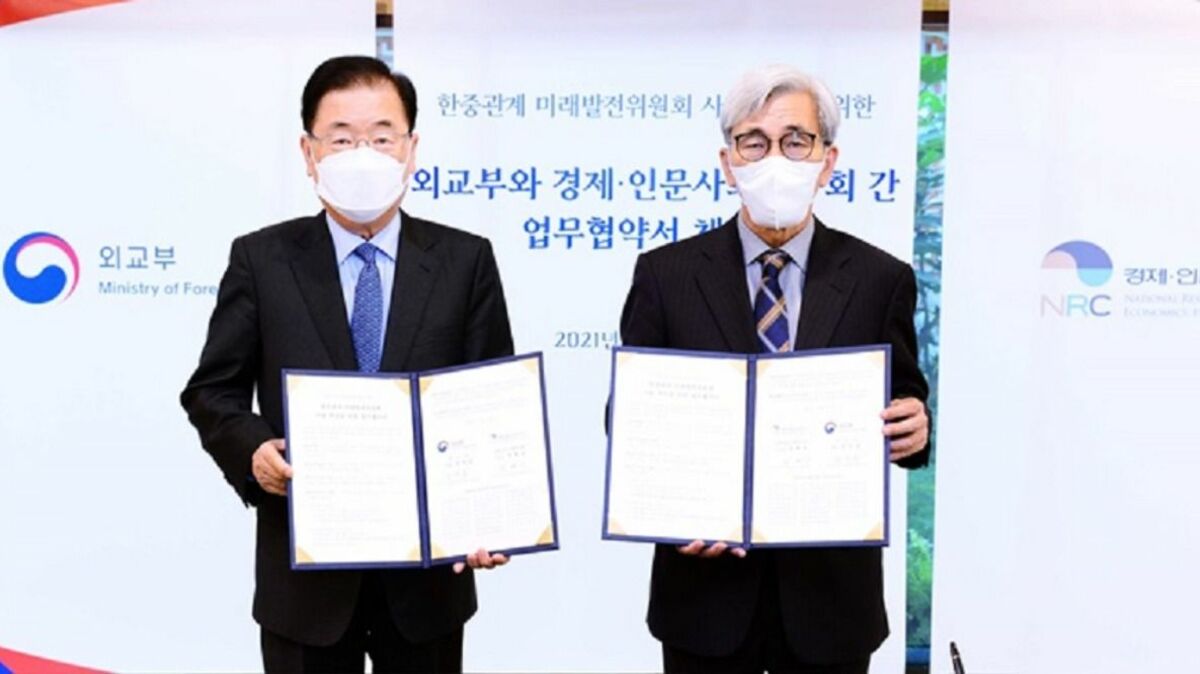 経済・人文社会研究会と中韓国交樹立30周年業務協約を交わした鄭外相(外交部HP)