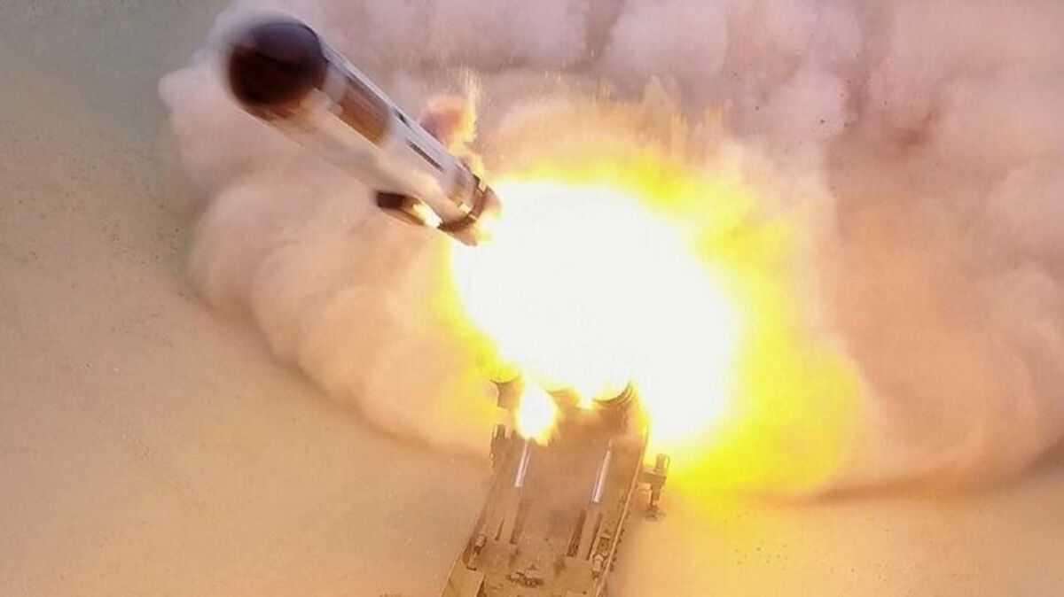 北朝鮮が1月30日に発射した中長距離弾道ミサイル「火星12」(労働新聞から)