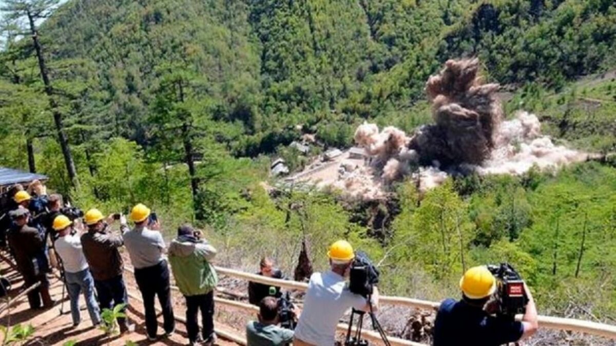 外国のメディアの立ち合いの下に4年前に行われた核実験場の爆破(朝鮮中央通信配信)