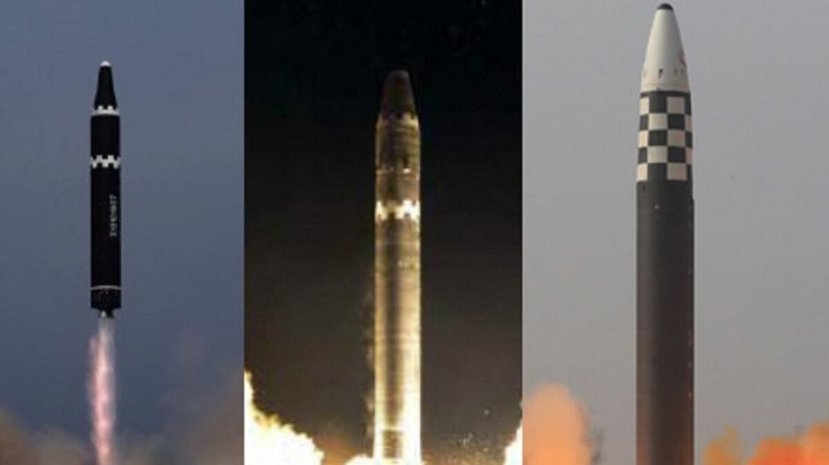 3日に発射されたICBM(左)と「火星15」(中)と「火星17」(労働新聞から)
