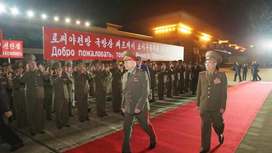 また、空港でロシア軍事代表団を歓迎する儀式が行われ、ショイグ国防相が強国防相に案内され、朝鮮人民軍儀仗隊を査閲したが、朝鮮中央通信は「朝鮮人民軍将兵は帝国主義者の強権と専横に立ち向かって国家の主権的権利と発展利益を守り抜き、国際的正義を実現するために戦うロシア軍隊と人民に対する戦闘的敬意と全面的な支持を表しながら、熱烈な拍手でロシア連邦軍事代表団を迎えた」と伝えていた。