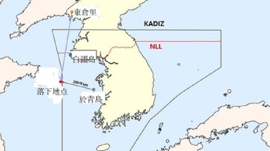 中国と韓国の間の黄海(西海)上に落下(合同参謀本部作成地図の筆者キャプチャー)