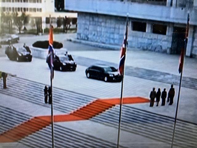 金総書記の車をガードする後方の2台の護衛車(朝鮮中央テレビから)