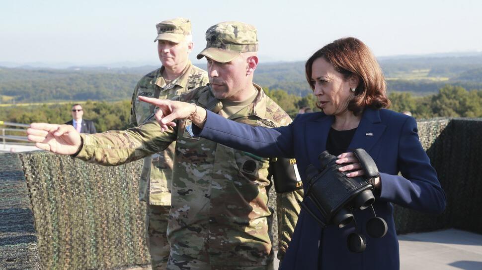 2022年9月に訪韓し、非武装地帯を視察したハリス副大統領(JPニュースから)