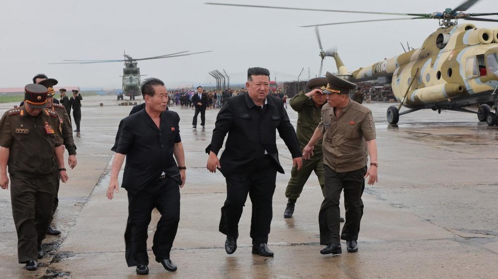 空軍ヘリによる被災者救助活動を視察中の金正恩総書記(朝鮮中央通信から)