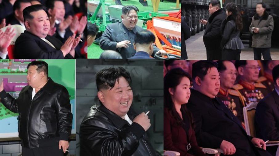 添付した写真は左上から万景台学生少年宮殿(1月1日)、農作機械展示会(1月2日)、重要軍用車両生産工場(1月7日)、左下から主要軍需工場(1月8日)、金化郡の地方工場(2月7日)、人民軍創建日慶祝公演(2月8日)でタバコを手にする金総書記である。この他に新たに建設された黄海北道光川の養鶏工場を1月7日に視察した際にも隣に娘がいるのにタバコを手にしていた。