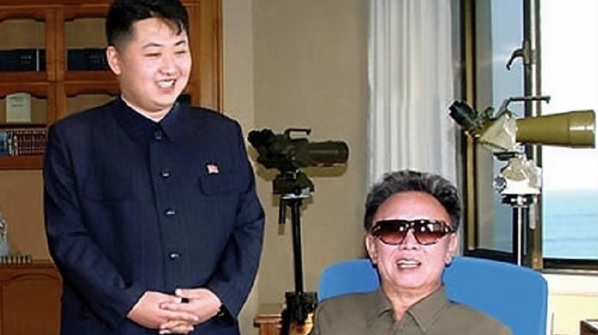 後継者成り立ての頃の金正恩総書記と父・故金正日前総書記(右)(北朝鮮の画報から)