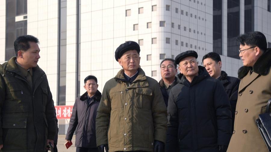建設中の平壌総合病院の工事現場を訪れた金徳訓総理(朝鮮中央通信から)