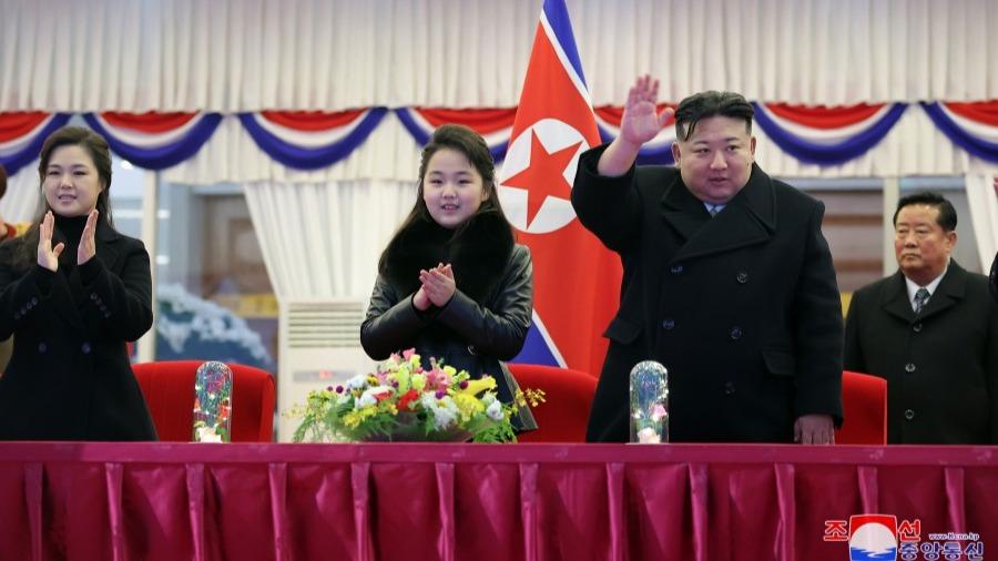 2024年元旦新春公演会での「金正恩親子」(左端は李雪主夫人)(労働新聞から)