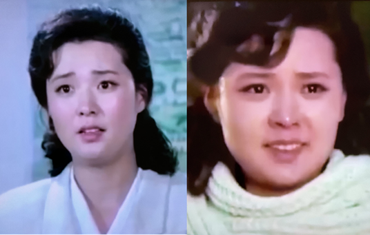 女優のキム・ヘギョン(左)と歌手のペク・ミヨン(朝鮮中央テレビから)